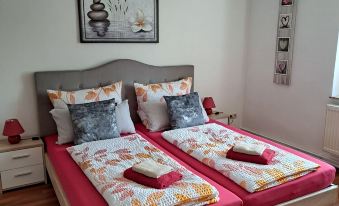 Wir hatten einen sehr erholsamen Urlaub bei Familie Laack. Sowohl die Außenanlange als auch die Ferienwohnung waren sehr liebevoll gepflegt und eingerichtet. Für den alltäglichen Bedarf hat es uns an nichts gefehlt. Es gab zwei PKW Stellplätze, was von Vorteil ist, wenn man mit zwei Autos anreist. Die Gastgeberin war sehr zuvorkommend und zugleich zurückhaltend. Wir haben sie kaum bemerkt. Wir können die Unterkunft definitiv weiterempfehlen.