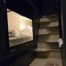 오후 3시까지 기다려야 방을 받을 수 있었고, 오전 10시에 나가야 해서 마음에 들지 않았습니다(아무 이유 없이 숙박 기간의 거의 반나절을 빼앗아 가니까요...). 시설과 캡슐은 정말 좋았습니다. 안에 선풍기가 있어서 공기를 순환시켜 주고, 침대도 매우 편안했고, 욕실과 샤워실도 많아서 화장실을 사용하는 데 전혀 문제가 없었습니다. 엘리베이터를 타고 싶을 때는 재빨리 타고, 안 타면 계단으로 내려갔습니다. 청소할 때 매트리스를 들어 올려야 할 것 같습니다. 제 매트리스 밑에는 머리카락, 면봉, 화장솜이 있었고... 제 파트너 매트리스 밑에는 열쇠가 달린 자물쇠까지 있었습니다... 위치도 최고였습니다. 다시 방문하고 싶습니다.