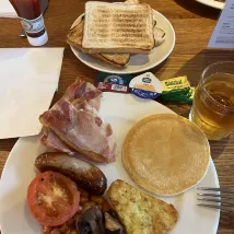 아침 식사: 영국에 머무는 동안 처음으로 진지하게 먹은 아침 식사였는데 매우 기분이 좋았습니다.