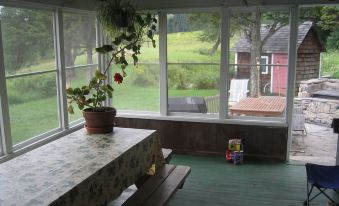 The farmhouse was built in 1870 and contains an updated kitchen, dining room, living room, study, 7 bedrooms and 2 bathrooms. Two fireplaces add to the cozy atmosphere. There is a no-fuss electric sauna house next to the top pond.About pets:Pets allowed: dogs and cats (limit 4 total).Well behaved dogs only.About checkOut:Check out before 11:00 AM.About children:Children allowed: ages 0-17.Pool table, swimming pond, paddle board and canoe.About customRules:Woodturning stove & fireplace in Den not permitted to be used!