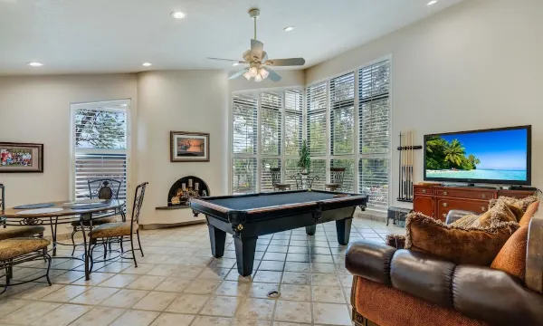 The home has a spacious single story floorplan with 4 bedrooms and 3 bathrooms a gameroom with a pool table. Great screened in Pool Area - Solar Heated Pool. Gas Pool Heater available.