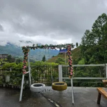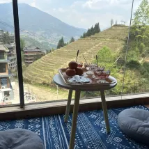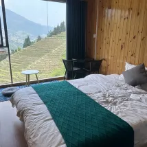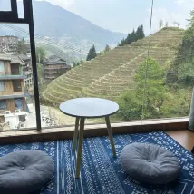 Service of the family was excellent. Sitting on the terrace and they brought us tea as it was a bit chilly. We had home cooked breakfast, lunch and dinner at hotel. Very good and delicious. Also try their excellent coffee. Hotel is near Dazhai viewpoint 1 and 2. Our room was large ( 3 beds), spacious bathroom. Really enjoyed our one night stay!