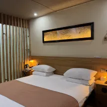 시설: 건물이 꽤 오래되어서 장식이 제한적입니다. 욕실은 객실 내부에 있으며, 간소한 나무 칸막이로 구분되어 있습니다. 향후 리모델링 시 일본식 욕실 디자인을 도입하는 것을 권장합니다. 호텔은 문화재 보호 구역으로 지정되어 있어 문화 유산을 아끼는 분들께 강력 추천합니다.