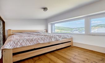 Modern, beautiful house "Ore house", 2 storeys, built in 2024. 300 m from the skiing area. For shared use: property. Private: terrace, garden furniture, parking at the house. Supermarket 750 m, restaurant 1 km, bar 800 m, bus stop "Loučná, háj. Park" 1.2 km. Nearby attractions: Boží dar 6 km, Fichtelberg 8 km, Jáchymov 14 km. Well-known ski regions can easily be reached: Klínovec 1 km, Boží dar 6 km. Hiking paths: Krušnohorská magistrála, Ježíškova cesta, Naučná stezka Božídarské rašeliniště. 3-room house 68 m2 on 2 levels. Beautiful and modern furnishings: living room with Scandinavian wood stove and TV. 1 room with 1 bed and 1 double bed. 1 room with 1 double bed. Open gallery with 1 double bed. Kitchenette (dishwasher, kettle, microwave, electric coffee machine) with dining table. Shower, sep. WC. Balcony, large terrace. Terrace furniture. Beautiful view of the mountains. Facilities: Internet (WiFi). Parking at the house. Please note: non-smokers only.