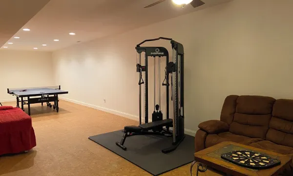 The indoors includes a wide-vision front porch, a industrial-grade kitchen, a bright sunroom, comfortable living space on the first floor. 4 spacious bedrooms on the second floor outfitted with high-quality mattresses not only provide ample space for families or individuals who require extra room for work or relaxation, but also ensure your every night's sleep is peaceful and rejuvenating. At dawn or dusk, you can also enjoy the beautiful farm with a glass of wine or a cup of coffee on the large deck on the second floor. The basement features an additional bedroom and living space and a recreational area with multifunctional fitness equipment, a pingpong table and a massage bed.