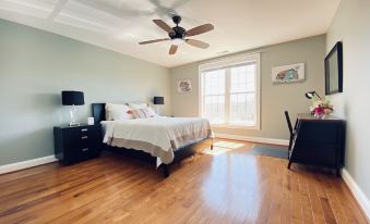 The 7000 square-foot property resides on 225 acres of land. It has 5 bedrooms, 3.5 bathrooms with ample parking space. It is conveniently located between Richmond and Charlottesville, more close to Charlottesville, 5 minutes off I-64, and about 15-20 miles from the University of Virginia and Monticello. Many breweries, vineyards and wineries are within driving distance with the nearest one only 3 miles away, and A farming farm located 1000 feet away provides healthy meat, eggs, milk, vegetables, fruits, and flowers. Ask host for the list!