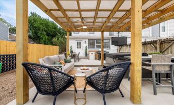 Welcome to the Tall Tailor, our three story Nulu home with stunning views of the city and an unbeatable location. This home is tailored with brand new renovations, including a covered back patio with a large hot tub, outdoor tv, fire pit, and comfortable seating for your entire group. We also have games for the kiddos, including life size connect 4 and jenga. Want to dine outside? No problem! We have a grill and outdoor table ready to go.