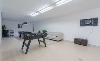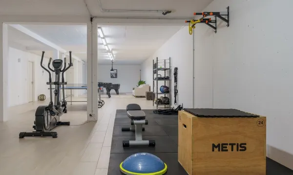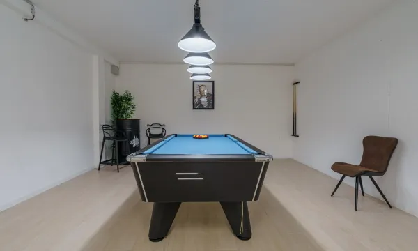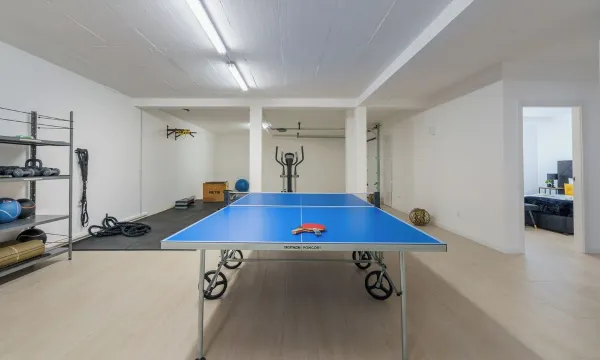 Floor -1: 1 bedroom with single beds and another with 1 king size bed. The laundry room equipped with a washing machine and dryer brings practicality to your stay. Get ready for countless hours of fun in the games room, with a pool table, table football, table tennis and arrows. The cinema room provides an immersive environment for watching your favorite films. If you're looking to keep active, the gym is ready to meet your needs!