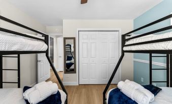 • Sleeps 10 comfortably: Primary king suite · Guest queen · Kid‑approved bunk room (2 full‑over‑twin bunks) · New queen sleeper sofa in the living room