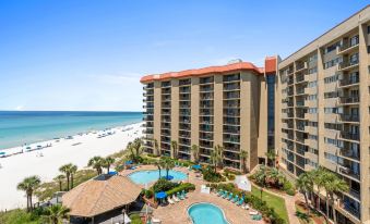 Located directly on the Gulf of Mexico, Summerhouse features two-bedroom, two-bath units, each with a balcony overlooking the gulf waters. Summerhouse is found on the east end of PCB, convenient to all the action the coastal town offers. Guests have full access to a wide range of amenities that include two gulf front pools, gazebo, hot tub, jet ski rentals and more beach services, pickleball and tennis courts, beach volleyball, and so much more. From Memorial Day through August, Summerhouse hosts summer movies under the stars, live music, karaoke, face painting for the kids, all sure to enhance your time spent there. The resort also has beach wheelchairs available for those who may need them.
