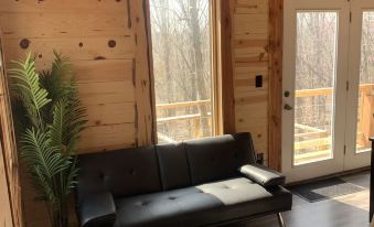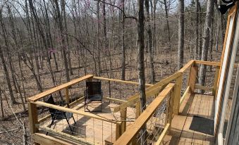 Enjoy the lovely setting of this romantic spot in nature, with a semi-primitive, modern cozy secluded treehouse in the woods! Explore 10 acres or wind down on the deck before relaxing in the hot tub. The inside has a very minimalistic design featuring on the first floor an electric fireplace, air conditioner, table, leather futon couch, kitchenette with a hand crank water pump sink and porta-potty bathroom. The upstairs loft is a romantic cozy getaway itself for any couple!About pets:Pets allowed: dogs (limit 1 total).About checkOut:Check out before 10:00 AM.About children:Children allowed: ages 0-17.About checkIn:Check in after 2:00 PM.About smoking:Smoking is not permitted.About minBookingAge:Minimum age to rent: 21.About events:No events allowed.