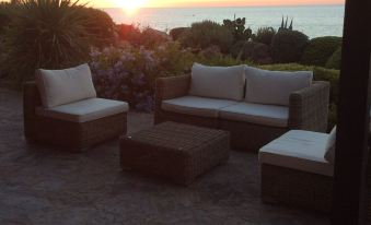 Le point fort de la maison est assurément la belle terrasse avec coin salon, grande table, plancha et vue sublime (couchers de soleil mémorables!). Quand la mer est calme, on peut s'y baigner directement depuis les rochers juste en contrebas de la maison.