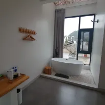 너무 일찍 예약하지 않았기 때문에 남은 방은 욕조가 있는 킹사이즈 침대뿐이었습니다. 그 지역은 작지 않고 꽤 넓습니다. B&B 왼쪽으로 500m 이내에 대형 슈퍼마켓, 쌀국수 가게, 돼지 발 냄비 식당, 그리고 여러 개의 작은 식당이 있습니다. 그곳에서 간단한 식사를 하는 것은 문제가 없습니다.