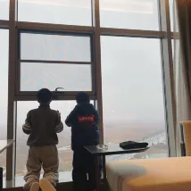 아마도 이 주변에서 가장 좋은 호텔일 겁니다. 저는 3박을 했습니다. 아이들은 매우 행복했습니다. 전반적으로 괜찮았습니다. 춘절이라 아침 식사를 하지 않았습니다. 방에서 멀리 포양호와 뤄싱둔이 보입니다.