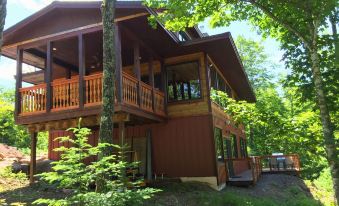 The home sleeps up to 10 adults comfortably, and is comprised of 3 bedrooms + a loft with a futon, 2 ½ bathrooms, an open main living area, a spacious modern kitchen, 2 wood-burning fireplaces, a rec room, and a den. The exterior of the home consists of two outdoor living areas including a covered porch accessible from the main level dining area and a large open deck with a nearby fire pit that is located just off of the lower level.
