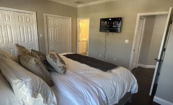 Located in Lutz, just outside of Tampa- minutes to Tampa International Airport, Raymond James Stadium, Amalie Arena, USF, Downtown Tampa, Channelside, The Riverwalk, and more. Close to everything, yet secluded and tucked away on over 2 acres for privacy and a chance to disconnect and unwind. This home is about 4,800 sqft with 6 bedrooms, 4.5 bathrooms, an office and a bonus room. The home was just completely remodeled with tons of high end finishes and details. Room for everyone with 5 king beds and one twin bed. Primary bedroom with en suite bathroom and huge walk in closet/dressing room on the first level, other 5 secondary bedrooms are upstairs. Gorgeous primary en suite bathroom with marble flooring, tile and beautiful leathered granite counters. “Wet Room” with soaking tub and walk in shower enclosed together. Brand new Stearns & Fosters and Black Beauty Rest mattresses in the upstairs 4 king bedrooms. Brand new American Signature beds upstairs with storage built in at the foot of the bed. Nightstands have a night light feature as well as built in USB and USB-C ports for easy charging. Luxury down comforters and king sized pillows. Each bedroom has a smart TV and the home has wifi and access to live tv with YouTube TV subscription access included. Ceiling fan in every bedroom. Huge, gourmet kitchen with TONS of soft close cabinetry and leathered granite counters. Farmhouse sink and prep sink. New Kitchen Aid appliances. Gas range. Coffee station with Keurig and K pods included. Countertop microwave stored away in cabinets, pull out and put on the counter if you wish to use during your stay. Toaster, Kitchen Aid stand mixer, Ninja blender, pots and pans, and other basic kitchen prep supplies ready for use. Dining room table with room for 8-10 place settings. Built in bar area with wine and beverage fridges. Leather power reclining sectional with usb ports and 65 inch tv in the family room. Additional lounge seating area with club chairs. Office located at the front of the home with a window looking over the front porch. Huge utility/pantry/wet room area and full laundry room on the first level with utility half bath. Bonus room with projector. Beautiful pond and wooded views surrounding the property. Pavered back patio with outdoor dining set. About pets:Pets allowed: dogs (limit 2 total).About checkOut:Check out before 11:00 AM.About children:Children allowed: ages 0-17.About checkIn:Check in after 3:00 PM.About smoking:Smoking is not permitted.About minBookingAge:Minimum age to rent: 20.About events:Events allowed: family gatherings, birthday parties, weddings.Maximum event attendees: 40.