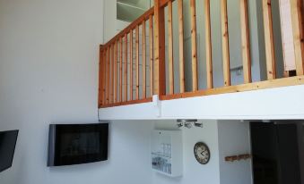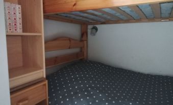 On the ground floor: a room with 2 bunk beds of 90x190 with bedside tables. Toilet. a kitchenette equipped with a fridge, ceramic hob, washing machine, oven and microwave, coffee + nespresso, kettle, toaster, raclette / grill / plancha / pancake, pressure cooker ... a living room with a convertible sofa bed 160x190, TV, WIFI and card games and society available. A booster seat is also available for children.