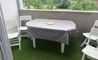 Balcony of 6m2 equipped table and chairs in the beautiful season to take breakfast and meals with a breathtaking view of the mountain.