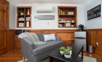 Also, keep in mind that noise may be an issue, especially on weekends, as there is a bar across the street. As we are located in downtown, it is not the quietest area.About pets:Pets allowed: dogs less than 20 lbs per pet (limit one pet total).Only one small dog allow and no cat..About checkOut:Check out before 11:00 AM.About children:Children allowed: ages 0-17.The studi is not equipped with any baby equipment..About customRules:Only registered guests are permitted on the property. Any parties held will result in a $500 fee and immediate eviction..A $300 deodorizing fee will be charged if smoking occurs inside the apartment.,No hair dyes or treatments allowed in the studio to prevent damage to our linen, towels, and bathtub. $200 fee for non-compliance..About checkIn:Check in after 3:00 PM.About smoking:Smoking is not permitted.About minBookingAge:Minimum age to rent: 21.About events:No events allowed.