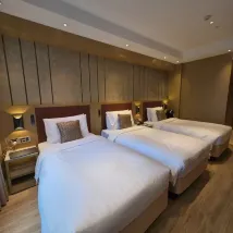마카오 가족 스터디 트립으로 갔는데, 여러 후기를 보니 위생이 안 좋거나 시설이 낡았다는 평, 직원 태도가 불친절하다는 평 등 걱정이 좀 되더라고요. 트리플룸을 예약했는데, 전반적으로는 괜찮았습니다. 호텔 인테리어는 요즘 광저우의 새 호텔들처럼 스마트하고 트렌디하지는 않지만, 위생 상태는 양호했고 기본적인 것들은 다 갖춰져 있었습니다. 서비스 태도도 괜찮았어요. 아래층 3층 식당에 갔는데, 맛있다는 후기가 많아서 한번 가봤더니 솔직히 광저우 광둥 요리가 훨씬 더 맛있더라고요. 솔직히 말하면, 호텔 위치는 괜찮았습니다. 경전철역과 비교적 가깝고, 아래층 차찬텡에서 식사하기 편리했습니다.