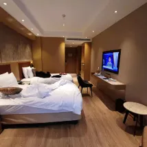 방은 꽤 만족스러웠어요. 깨끗하고 위생적이었으며, 매우 조용했고 방음도 잘 됐어요. 프런트 직원분들은 소통이 원활했고, 중국어(보통화)로도 응대가 가능했어요.