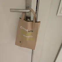 아침에 빵과 물을 봉투에 담아 문고리에