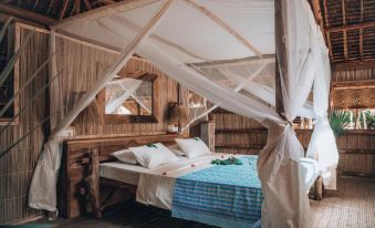 We stayed here in July 2025 for 3 nights with our 2 little ones. After a drive from the airport and navigating the bumpy roads we arrive to a little slice of heaven. The kids jumped out of the taxi and started digging at the reception hut! That's pretty much what they did for the 3 days after as the whole place is built around sand and walking barefoot. It is very coastal, open, makuti thatched, rustic, breezy, laid back, and forces you to relax! The room Suli Suli was fabulous. Much bigger than we expected and the giant bed enough for all 4 of us. Plenty of space for bags and a large veranda with a swing bed. You leave your room open as its all perfectly safe and leave the kids to play outside digging! Food and service is really good. Everything made fresh to order. They ask you what you want for lunch in advance and at what time so the kitchen can prepare accordingly. I felt this was a really good touch for dinner and lunch. All the staff inc room maids were fantastic. They really went out of their way to ensure we were comfortable. The main dining and bar area is fabulous. Very laid back with many dhow boats dotted around the place perfect for kids to scramble in and out of. With the beach clear of rubbish or seaweed and sparkling with gold! its a magical spot on the coast. If you want some rustic living for a few days this is the place for you and I know we will return in the future.