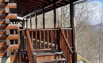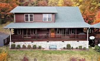 Enjoy the Smoky and Blue Ridge Mountains in a beautiful luxury log home, on 1.4 wooded acres, where you can relax in a private and tranquil setting, enjoying spectacular mountain views, wildlife, nature and amazing sunrises, just minutes from hiking, golf, restaurants and shops. With an elevation of 3700’, beauty can be seen from its many windows and large porch area where you can enjoy the views in the comfort of the rocking chairs, while unwinding in the hot tub in the adjoining gazebo, or from the fire pit, where you can make s’mores and your enjoy favorite libation.
