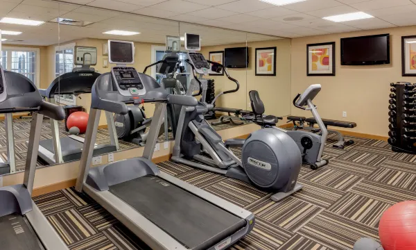 Beautiful patio sitting area. Breakfast was amazing and fully stocked and staffed. Clean rooms, beautiful pool. The fitness room was incredible with complementary bottles of water.