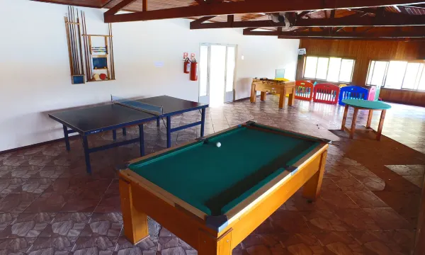 Amo o ambiente em meio a natureza, com um lago lindo e que aceita pet. Com piscina aquecida, sauna úmida, lareira no quarto e comida deliciosa. O lugar precisa de bastante manutenção porem a equipe de recreação (Tio cabelo e Tio Dimais) e a família que cuida do restaurante da piscina compensam isso! Pessoal da recreação é sensacional, eles não só divertem as crianças como os adultos também , propondo atividades como: charadas, competição de dardos, campeonato de sinuca, passeio pra ver cavalos e karaoke. Pessoal da lanchonete também merece elogios, pois proporcionam um ambiente familiar com muita simpatia, preços acessíveis e qualidade nas bebidas, lanches e porções. Os funcionários do lugar estão de parabéns pois dão a sensação que você esta hospedado em um lugar de amigos.