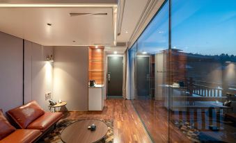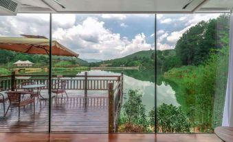 很好的一個地方,不知道為什麼入住率不高?房間乾淨整潔,科技感十足,床是升降式的,平時收上去,空出的地方放可以休閑看書等。落地窗外就是湖水,在房間內或陽台上都可以將美景盡收眼底,偶爾還能看到釣友垂桿岸邊,要説唯一差點意思的就是菜品不夠豐富,早餐衹有麪條或粉,但這裏離下司古鎮很近,20幾分鐘的車程,嘴饞一趟也就到了!總之,國慶期間能找到這麼一個安靜悠閑的地方,很是滿意!
