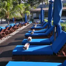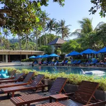 Helpful staff and beautiful grounds. We spent our days lounging by the pool. We rented motorbikes through the hotel to explore the area.