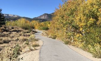 Snowcreek is located with views of Mammoth Mountain, Mammoth Rock, and other mountain ranges. It is surrounded by Snowcreek Meadow Preserve and natural wilderness sanctuary in it's backyard. It is minutes from hiking and biking trails. The ski resorts are minutes away via vehicle and the free shuttle service is within 500 feet of the condo unit. A locked ski closet is available right outside the unit.