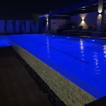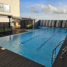 시설: 수영장은 매우 편안하고 아름답습니다. 또한 오후 10시에 문을 닫는 어린이 수영장도 있습니다.
