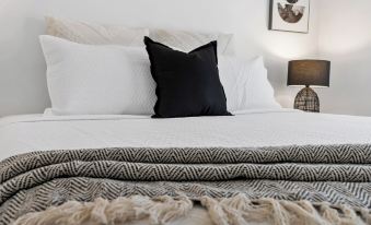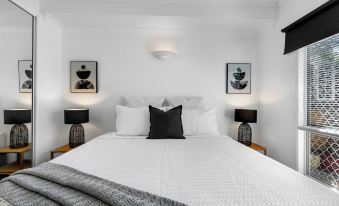 If you’re looking for a suburban stay just outside the city, then look no further. This cosy apartment is perfect for couples and travelling singles, offering air-conditioned open-plan living with a TV and sofa, which can be converted into a double bed upon request. Sliding doors open to a private courtyard with ample space to dine outdoors for four. The well-appointed monochrome kitchen offers all the essentials, including a dishwasher for easy cleanup.