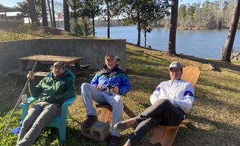 Sit back and relax on the spacious, covered front porch with a beautiful view of the lake and seating for multiple guests. Cook on the Old Smokey barbeque pit while entertaining family and guests. Enjoy the incredible fishing on the private pier which includes a fish cleaning station, picnic table and umbrella for shade, or cast a line along the large seawall. Gather around the outdoor stone firepit (bring firewood) on colorful, comfortable chairs for some delicious S’mores and Hot Cocoa. Grab your binoculars and enjoy some bird-watching while sipping on a hot cup of coffee, some ice-cold tea, or your other favorite beverage.