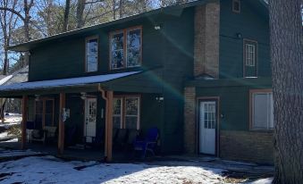 Kenneled indoors!.About checkOut:Check out before 11:00 AM.About children:Children allowed: ages 0-17.Kid friendly with responsible adult supervision..About customRules:Be sure to tell us what brings you to the area, how many are coming to stay, their ages, and whether you will be bringing a pet. If so, breed and #..If more than 8pp we can offer you the bunk room (6pp) for an additional $50 fee to be collected with add'l payment post booking less a credit for,Parking can accommodate up to 6 vehicles, or 3 should they have trailers attached..About checkIn:Check in after 4:00 PM.About smoking:Smoking is not permitted.On Porch and Outdoors only!.About minBookingAge:Minimum age to rent: 21.About events:Events allowed: family gatherings and birthday parties.Maximum event attendees: 4,Prior approval required. No over night stays..