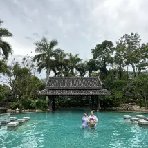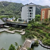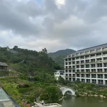 저는 이 여행에 매우 행복하고 만족했습니다. 우리는 고속철도역에서 호텔까지 바로 갈 수 있는 셔틀버스를 예약했습니다. 경치 좋은 곳에 위치한 이 호텔은 원스톱으로 즐거움을 만끽하기에 매우 적합합니다. 로비의 릴리는 훌륭한 서비스를 제공했고, 좋은 전망이 있는 객실을 마련해주었습니다. 그녀는 호텔의 온천과 체험 가능한 몇 가지 서비스를 열정적으로 소개했습니다. 밤에는 로비 밖에서 댄스 공연도 펼쳐졌습니다. 온천은 매우 편안했습니다. 장미와 라벤더 수영장, 작은 물고기 수영장, 워터파크도 있었습니다. 아이들은 정말 좋아했습니다. 아침 식사로 지역 페이스트리를 먹었습니다. 우리는 산 위에 있는 정자에서 휴식을 취했습니다. 하늘은 높고 구름은 가벼웠으며, 경치는 탁 트였습니다. 전반적으로 방문할 만한 가치가 있는 곳이었습니다.