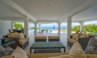 It’s special to dine in this location and it’s even more special on the quality white porcelain dishes, and beautiful crystal wine glasses while seated around the unique glass topped one piece, hand carved acacia dolphin dining table. For less formal times, enjoy the colorful sea-themed melamine dishes on the balcony or overlooking the pool. All three dining areas provide seating for 8.
