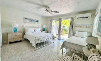 Guest Bedroom: Queen bed + twin bed, with direct pool access through sliding glass doors