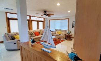 The sleeping arrangements are as thoughtful as they are comfortable. On the first floor, two guest bedrooms each feature king beds and share a full bathroom—ideal for multi-generational groups or early risers. Ascend the main staircase—evoking the feel of a wooden sailing ship—to reach the second floor, where you'll find four more bedrooms and three additional full bathrooms. These include: