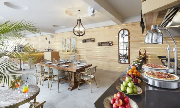 이 올 인클루시브 호텔에서는 시설 내 레스토랑에서의 식사와 음료가 요금에 포함되어 있습니다. 일부 레스토랑에서의 식사, 특별 저녁 메뉴 및 요리, 일부 음료 및 기타 편의 시설에 대해서는 요금이 부과될 수 있습니다. 호텔에 있는 레스토랑 MAIN RESTAURANT에서 점심 식사, 저녁 식사를 즐겨보세요. 또는 편하게 객실에서 24시간 룸서비스를 이용하실 수 있습니다. 풀사이드 바 또는 2 개의 바/라운지에서는 시원한 음료를 마시며 느긋한 시간을 보내실 수 있어요. 아침 식사(뷔페)가 매일 07:00 ~ 10:30에 무료로 제공됩니다.