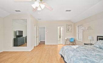 Stay comfortably in McKinney at this 4-bedroom house. With a king bed, 2 twin beds, 2 queen beds, and two bunk bed, there's plenty of space for all guests. Enjoy the convenience of amenities like a washing machine, AC, WiFi, and more. Three bathrooms with a shower, bathtub, and hair dryer ensure everyone stays refreshed. Experience a beautiful and peaceful retreat during your stay. We hope you enjoy what our place and McKinney has to offer.About pets:Pets allowed: dogs and cats less than 50 lbs per pet (limit 2 pets total).About children:Children allowed: ages 0-17.About smoking:Smoking is not permitted.About events:No events allowed.