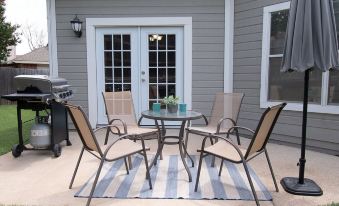 The backyard provides a perfect outdoor setting with a patio and grill for al fresco dining. Make yourself at home and take advantage of all the amenities Texas Roots offers for a memorable stay.