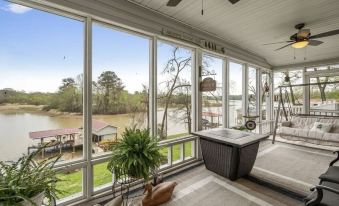 For a Christmas stay was awesome as every room had decorations. For people that like games game room was perfect with assortment ie air hockey, bowling machine, pool table and assorted board games. Assorted tv screens and sitting areas throughout home as well as assortrd outdoor sitting areas. Could tell would be jist as awsome in summer with wonderful dock on the water.