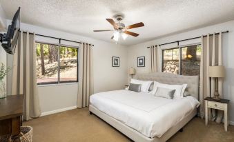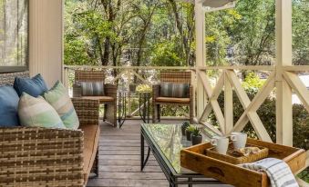 The gorgeous open living room leads right into the magazine-ready kitchen and dining area. Enjoy complimentary tea, coffee, and snacks upon your arrival. We have plenty of private sleeping space for the whole family in our three spacious bedrooms with five beds total, and we offer a porta-crib for little ones upon request. Curl up on the couch and enjoy your favorite show or movie on our large, flatscreen TV equipped with a great selection of streaming services. Gather in the game room for indoor fun, or head outside for more adventure. We have tons of hiking and water activities nearby! We offer horse boarding upon request, with both shelter and fenced pasture.