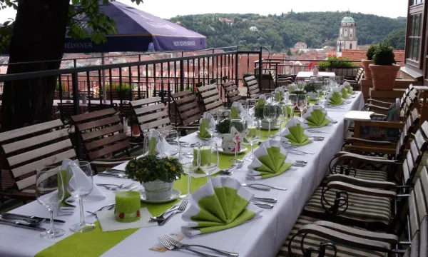 Arrive early evening and was greeted with a glass of Sekt! It was so very welcome after a hard day's meetings. Unfortunately I only stayed for one night, I was invited out for dinner at a different location, but breakfast was great at the Burgkeller. Staff was very friendly and the location was fairytale. Check out was pleasant and quick - I loved the little gift of home made cookies on check out. The cookies saved me from starvation on my 7 hour trip to the airport. I will be back!