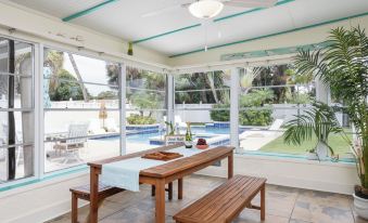 Stay Together, Play Together!! 5 min fr the beaches,10 min fr USSSA Sports Complex. The whole group will be comfortable in this spacious and unique home away from home across from beautiful Indian River Lagoon & min fr the Melbourne beaches. 3 units: 4bd/4ba (8p), 3b/1ba (5p), 1bd/1b(2p) + fold out couch(2p) & chair(1p). Also offering large patio with swimming pool, grill, pickleball, basketball, cornhole, FL Room has games, cards, puzzles, + plenty of parking. Pool is cool & refreshing. Close to beautiful beaches, charming shopping, restaurants and more. ****New feature! Heated pool during winter months (no hot tub)****About pets:No pets allowed.About checkOut:Check out before 11:00 AM.About children:Children allowed: ages 0-17.About customRules:Children not permitted to stay overnight in the units without adult for their safety..Use of Grill: grill is available for use. We do not supply propane. You can buy propane at Ace Hardware and Circle K.,Garbage: Green lids to the road Tue and Fri AM. Recycling (yellow lids) Wed AM..About checkIn:Check in after 4:00 PM.About smoking:Smoking is not permitted.About minBookingAge:Minimum age to rent: 30.About events:No events allowed.