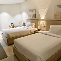 바다와 가까워서 측면 바다 전망이 있습니다. 패밀리룸만 정면 바다 전망을 볼 수 있으며, 다른 객실은 측면 바다 전망을 가지고 있습니다. 그러나 아래층으로 내려가면 호텔의 전용 해변이 있습니다.