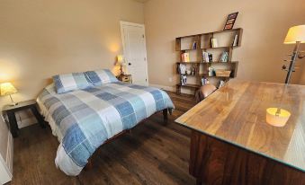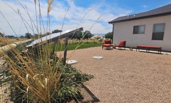 Peaceful setting at the end of the road with expansive vistas of the Book Cliffs, Grand Mesa, and Colorado National Monument. Indoor and outdoor space curated for optimal comfort and calm. Spectacular sunsets, sunrises, and stargazing to bookend your days of exploring all the Grand Valley offers. Close to trails and town yet in a world all its own. The perfect fit for adventuring, relaxing, and everything in between.